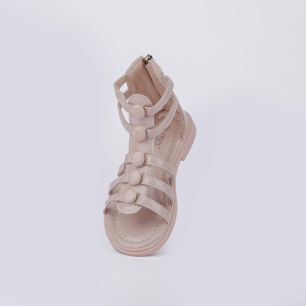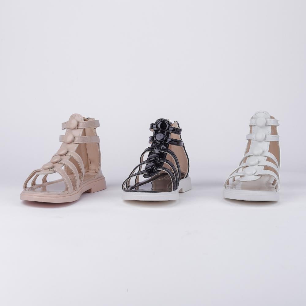 يتمتع الصندل أيضًا بسحاب من الخلف، مما يسهل عملية الارتداء والخلع ويضمن تثبيتًا آمنًا للقدم. وبالنسبة للنعل، فهو مسطح ليوفر استقرارًا وراحة أثناء الحركة واللعب.