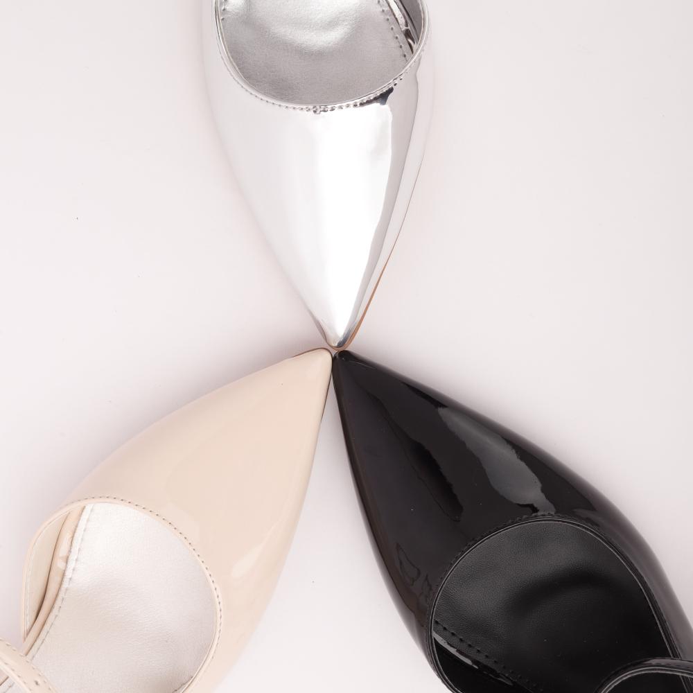 يأتي الحذاء بمقدمة مدببة، وهي تفاصيل تضفي لمسة من الأناقة والرقي على التصميم. تعطي المقدمة المدببة للحذاء مظهرًا حادًا وأنثويًا.