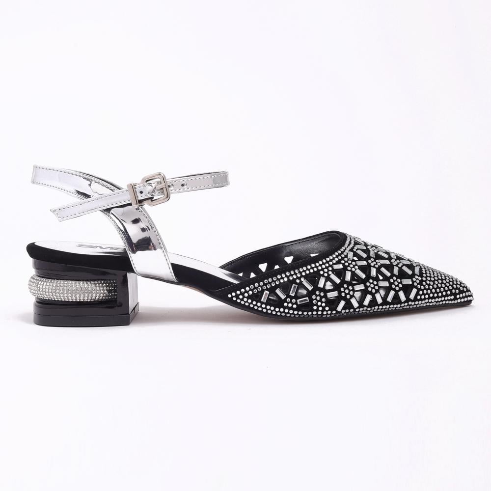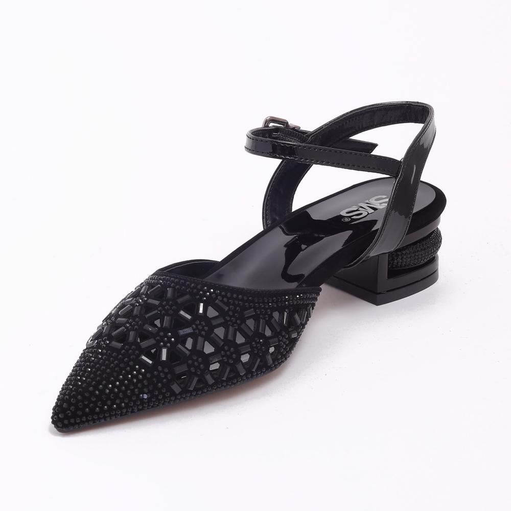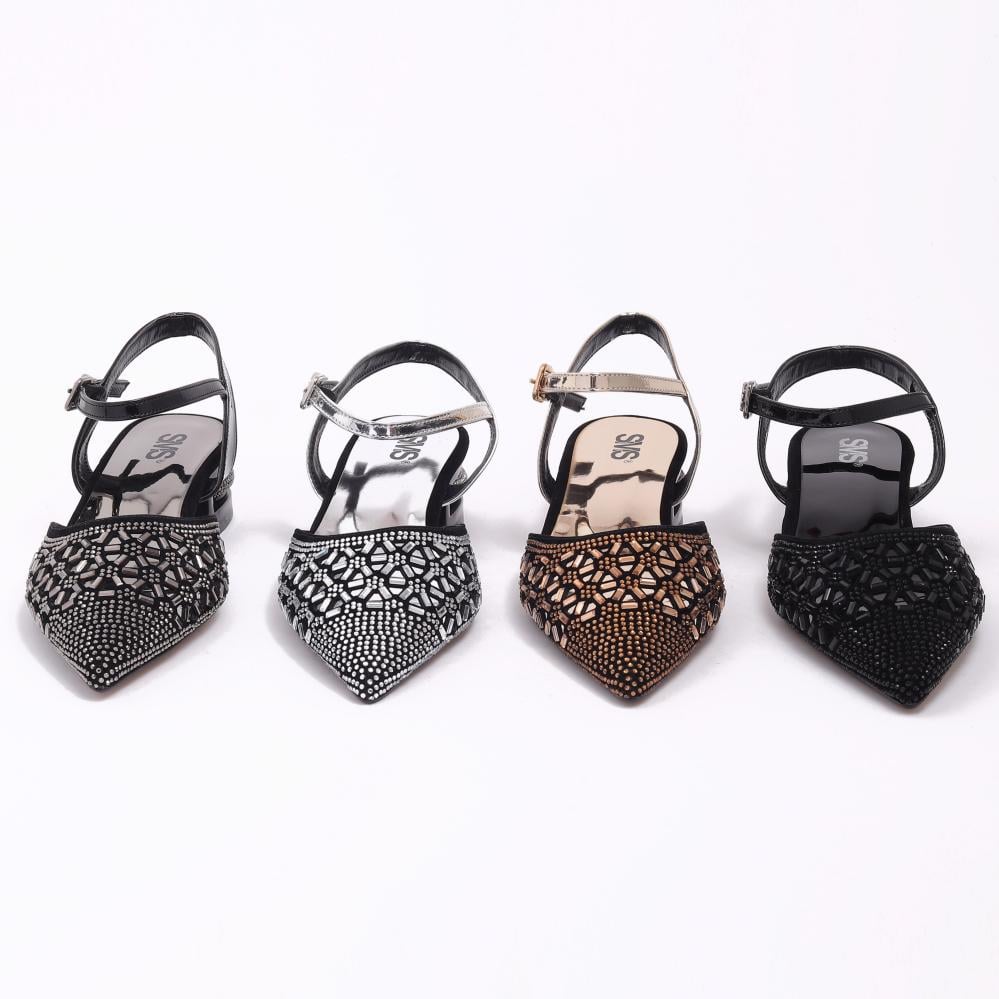 يتميز بسير مرصع بالكريستال يمر في المنتصف، مما يضيف لمسة لامعة وجميلة للحذاء.