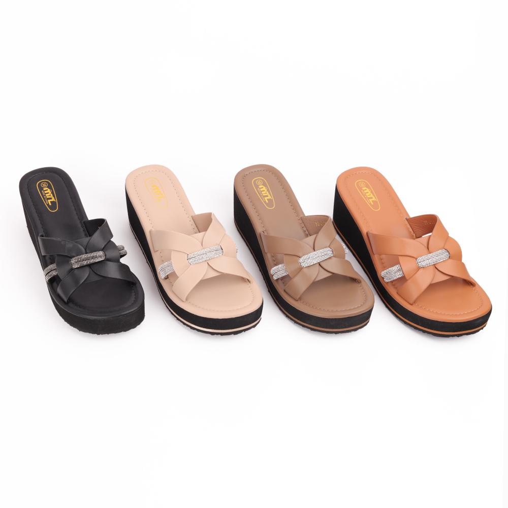 يتميز الشبشب بتصميم أنيق وجذاب، حيث يحتوي على جزئين متقاطعين من الجلد المرصع بالكريستال على الوجه العلوي للشبشب. يمنح هذا التصميم لمسة فريدة ومميزة للشبشب.